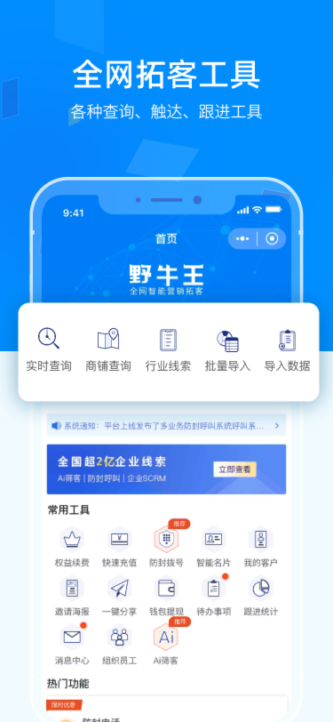 野牛王全网营销平台,数字化营销已经进入各行各业,彻底解决传统营销客户资源少,获客成本高,一线销售效率低,人工跟进效率慢,缺乏营销线索,客户线索难跟踪,广告投放不精准,客户沟通过程难管理,意向客户获客成本高,客户跟进录入资料难,线索数据更新不及时, 业务系统数据不互通,销售使用意愿低等难题。
